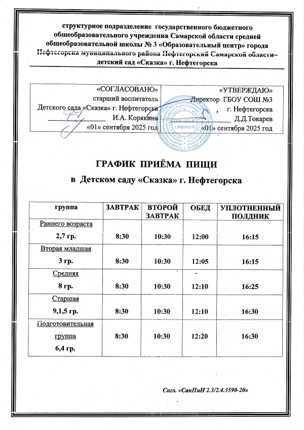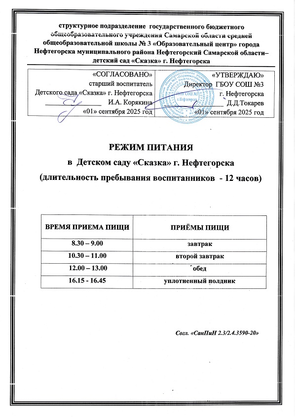 Полное наименование ОО: Структурное подразделение государственного бюджетного общеобразовательного учреждения Самарской области средней общеобразовательной школы № 3 «Образовательный центр» города Нефтегорска муниципального района Нефтегорский Самарской области–детский сад «Сказка» г. Нефтегорска Сокращенное наименование ОО: Детский сад «Сказка» г. Нефтегорска |