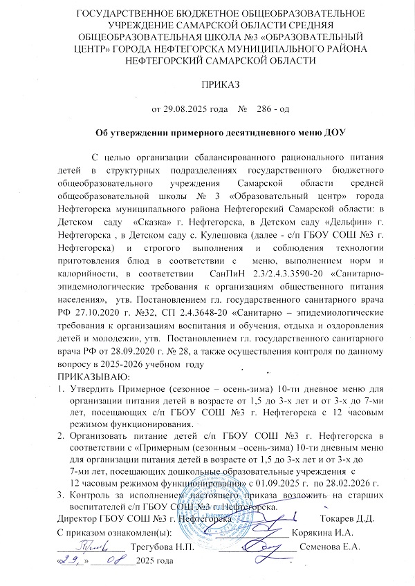 Ответственный за организацию горячего питания в ГБОУ СОШ №3 г.Нефтегорска – Токарев Дмитрий Дмитриевич, директор.